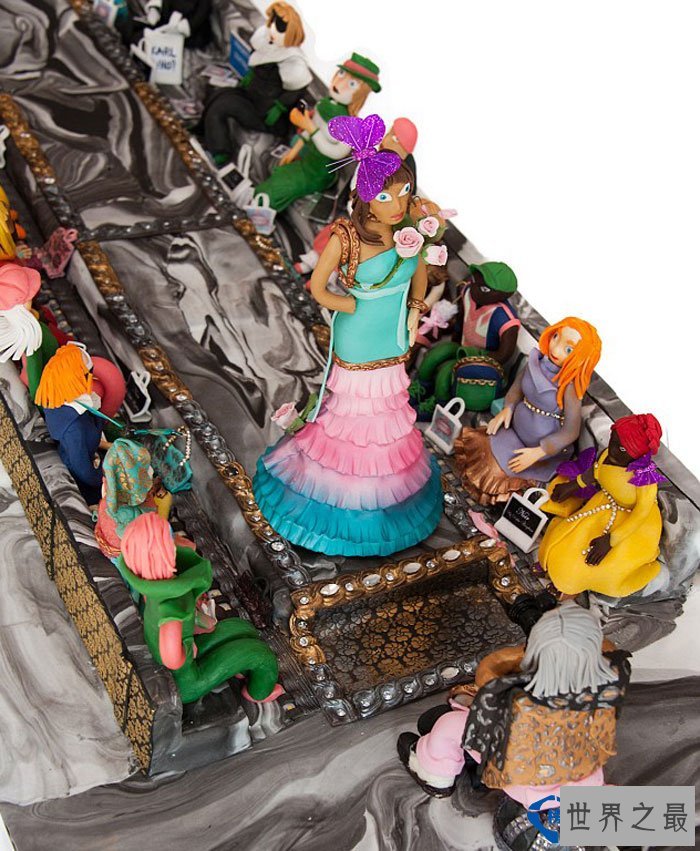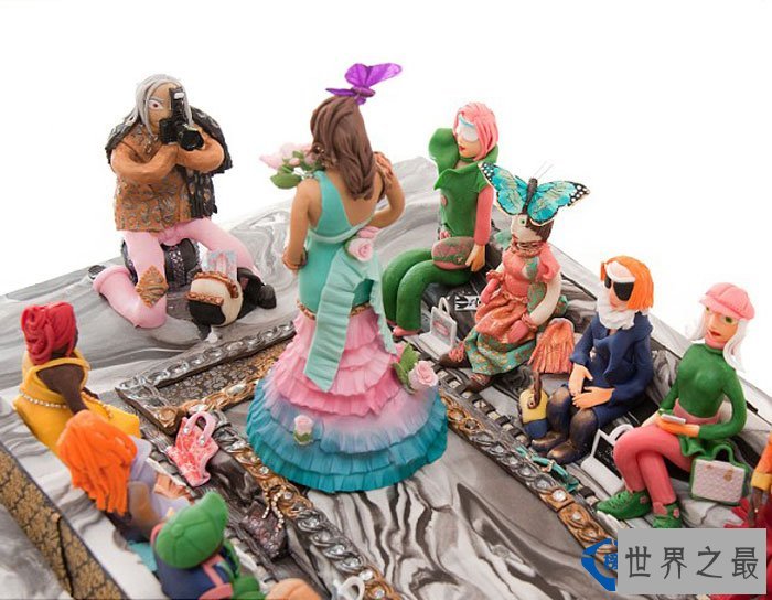 这17颗钻石的价值就高达3000万英镑(约合人民币约合人民币2.9亿元),另外还有4000颗包括紫水晶和绿宝石在内的宝石。蛋糕上的T台也被围起来,使用400颗1克拉和73颗3克拉白钻以及75颗3克拉的黑钻装饰。
