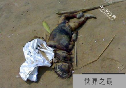 这就是传说中的水猴!死了被发现在沙滩上的尸体,最初生下来是据说是鱼的身子然后进化猴形,但是身上还是有毛发全身红色的,有一副绿色的牙齿 。它的牙齿可以吸收人血来作为自己的身体营养!