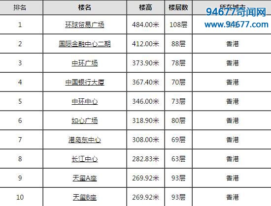 香港最高楼环球贸易广场(118层/490米),最新香港十大高楼排行