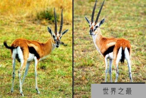非洲瞪羚的脖子特别长,主要生活在非洲东部地区,属于稀有物种,面临着灭绝的危机。它们有像小鹿一样的浅棕色皮毛,身体的下部一般是白色的。这种瞪羚的体型不是很大,在受到惊吓的时候不会选择逃跑,而是突然跳起来。