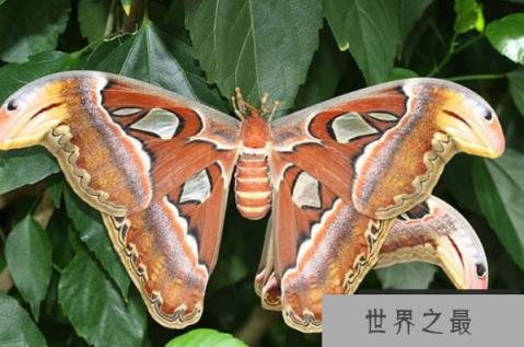 乌桕大蚕蛾这个翅展在180至210毫米之间的世界最大的蛾类,是前后翅周围环绕有黑色带纹,并在中央分别分布有一个三角形无鳞粉透明区域,翅面整体呈红褐色的大型蛾类,而这种十分珍贵,数量稀少的蛾类,是主要分布在中国和东南亚地区的受保护的种类。