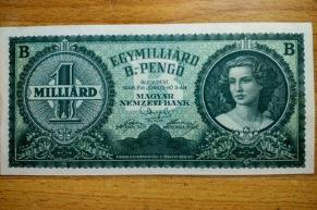 别看帕戈币的面值大,但是根本就买不到什么东西,当时的匈牙利正遭受到最为严重的通货膨胀,导致货币的不断贬值,物价的高速上涨,才导致此情况的出现,一张1万亿亿的帕戈币也许只能买上一个面包,直到1946年的时候此货币被新货币“福林”给取代!