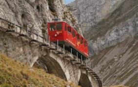 位于瑞士中部的琉森是一个倚山靠湖、风光秀丽的城市,是著名的旅游胜地。皮拉图斯山不仅拥有许多神秘的传说,更吸引人的是山中世界上最陡峭的齿轮铁路。至今为止,该铁路运行120多年零事故。列车一半车身都悬在1600多米的高空中,素来以陡峭、危险著称,甚至被外媒冠上“最恐怖的铁路列车”这一称号。