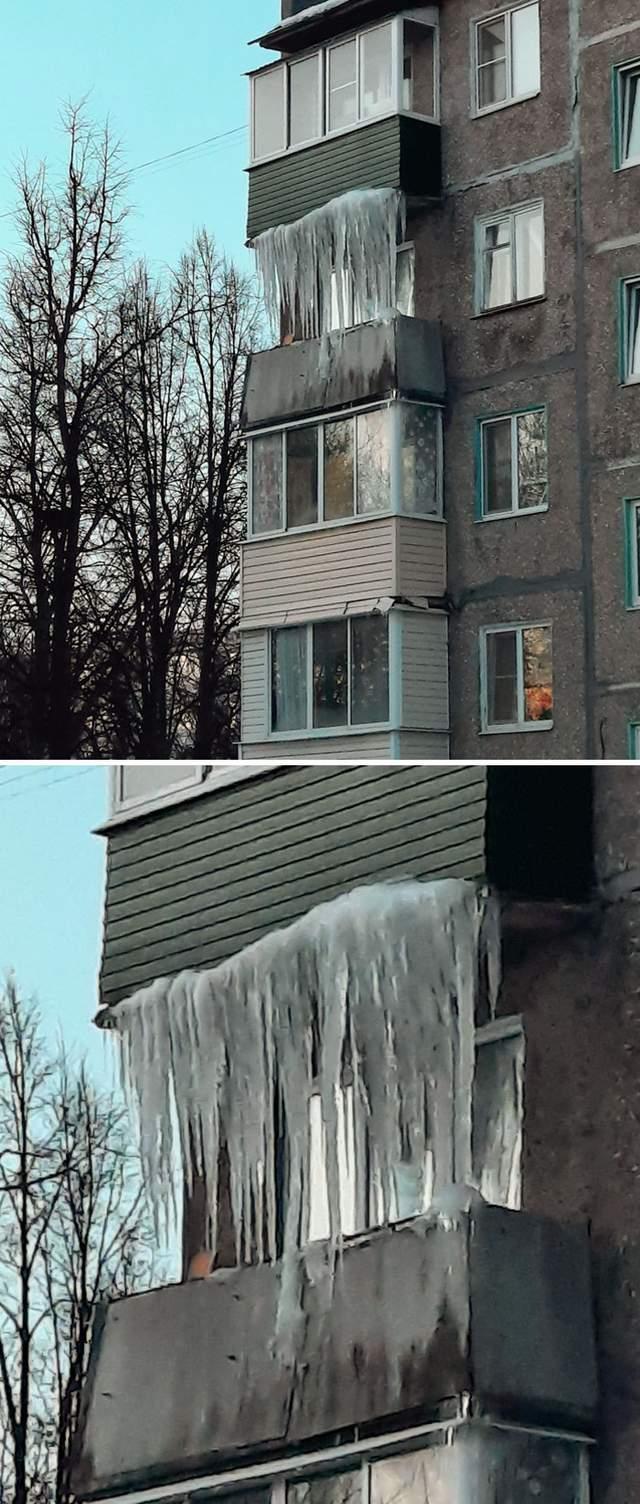 俄罗斯的冬天真不是一般的冷,这是楼上跑水了吗?