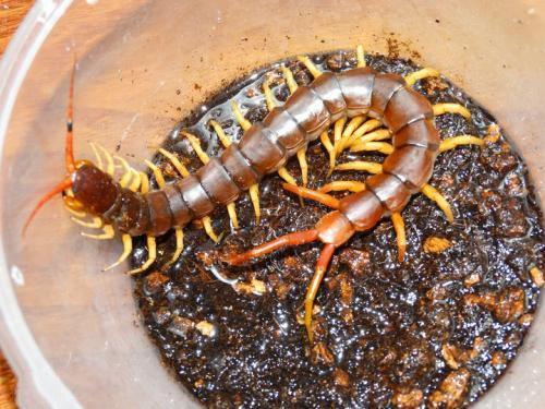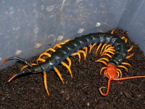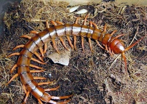 4、越南巨人蜈蚣:越南巨人蜈蚣可以生长到25厘米以上,越南巨人蜈蚣是亚洲最大的蜈蚣,毒性较强。生性凶恶,性格凶猛,敏感,一般情况下会主动攻击在它附近的其他节肢类动物。巨人蜈蚣一般的食物为大麦虫、面包虫、蟋蟀、蚂蚱、鱼肉、小鱼等。