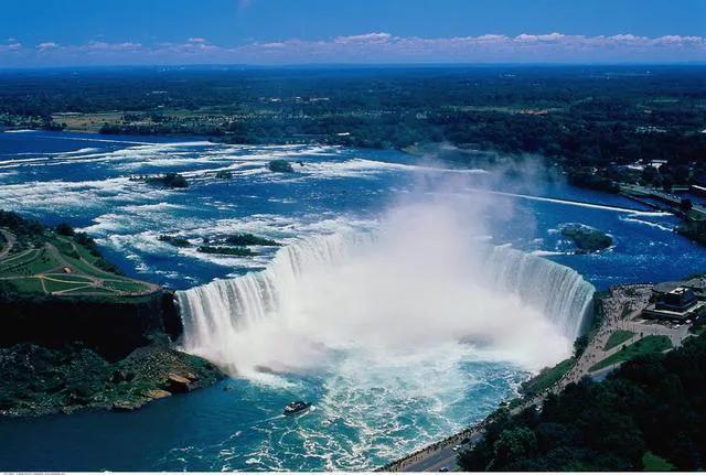 尼亚加拉瀑布,位于加拿大安大略省和美国纽约州的交界处的尼亚加拉河上,该瀑布横跨加拿大与美国,与伊瓜苏大瀑布、维多利亚瀑布并称为世界三大跨国瀑布。该瀑布气势恢弘,流量巨大,是世界上水流量最大的瀑布,也是世界上最大的跨国瀑布。