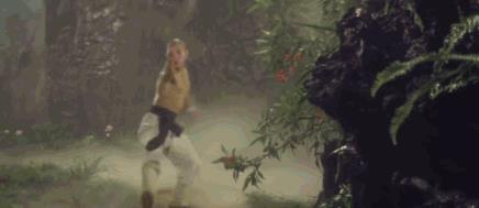 可为数不多的镜头里,只是吊着威亚从台阶上飞下来罢了,没有什么展示的空间。