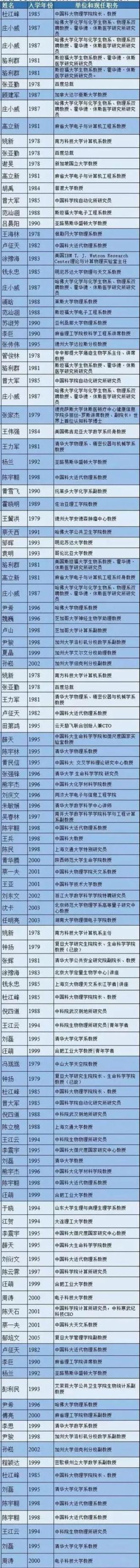 下面有一份中科大少年班校友荣誉不完全统计名单: