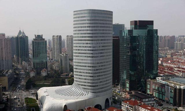 这一看就是一个特别具有山寨气息的大楼,但是偏偏它还在发挥着五星级酒店的重要作用。明眼人一眼就能看出来他所模仿的建筑就是著名的马来西亚的双子塔。但是首先从金色的配色上来看就已经失败了,从个头上和比例上来看又不是很和谐。加上金色和周边建筑的色调格格不入,让这里显得突兀又难看。但是别看这么丑的建筑,想在这里住一晚上可是很贵的。第二个建筑:上海高度仿真的尚嘉中心大楼
