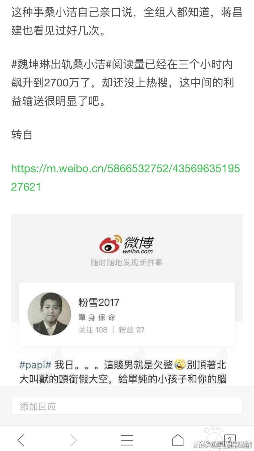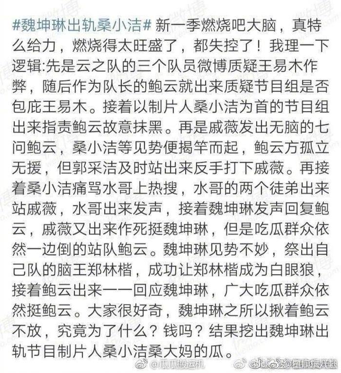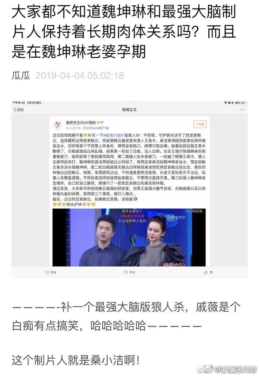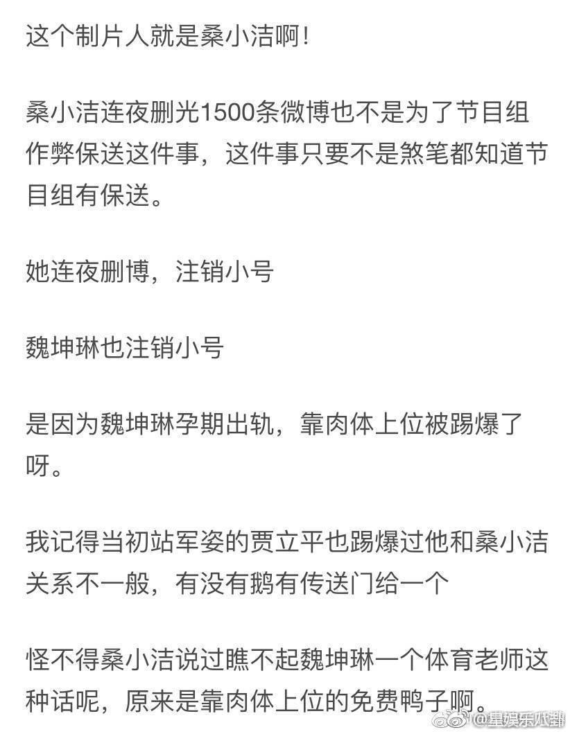 魏坤琳 桑洁最强大脑或成最强大瓜,撕❌有风险!网友扒出魏坤琳在老婆的孕期出轨桑小洁,桑小洁连夜清空了所有微博。不知道发生什么事的请看图1,热心网友最强课代表的总结!这么会撕,两人都不出来回应下吗?