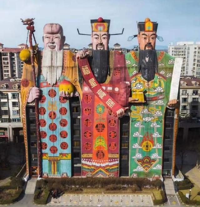 三河市的人都知道,这是整个城市里面最奇葩的一座建筑了。远远望去,就好像三个神仙从天界降临到凡间一般。寿星笑眼盈盈地注视着人间,看起来非常和蔼慈祥,但是如果你仔细去观察,就会感觉到非常诡异。其次就是福星了,福星手里拿着横幅,似乎在祝福人们一定要福星高照。它全身通红,给人一种非常喜庆的感觉。最右侧的就是禄星了,他手里面拿着一个官印,威慑四方。