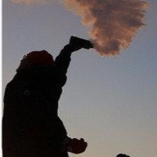 #这个冬天这么玩# 中国北极村位于中国最北端的黑龙江省漠河市,最低气温接近零下30摄氏度。这里积雪终年不化,夜晚繁星满天、银河闪耀,可以看到极光。图为游客在北极村体验“泼水成冰”。来源:视觉中国#看花花世界# #全球减贫伙伴研讨会在陇南#
