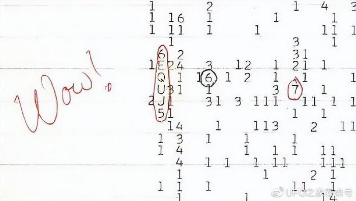 科学家认为他检测到了外星信号,并且用红笔把信号圈了起来,在旁边惊叹地写下了“Wow!”