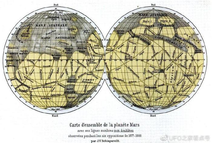意大利天文学家乔瓦尼·夏帕雷利对火星的观测、成像,隐约间他发现了火星上有运河的存在,有像地球上的大陆,还有海洋。