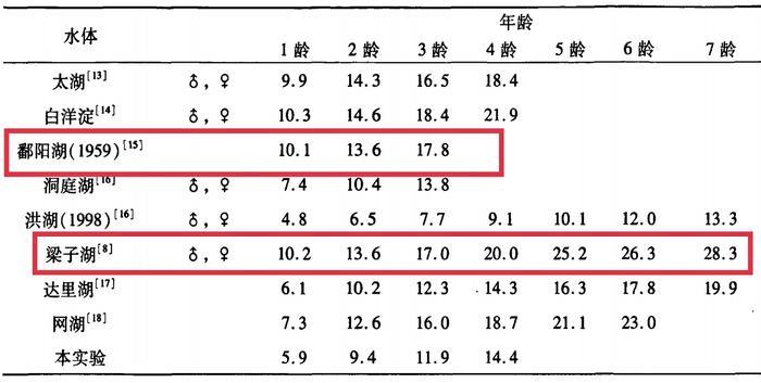 中国主要淡水湖中鲫鱼的年龄和体长数据