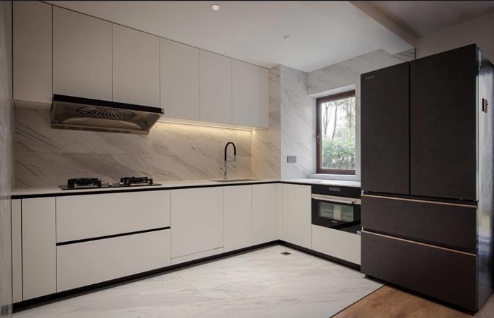 预算较充足且追求极简效果,可以选择门板激光封边+柜体PUR封边的搭配。