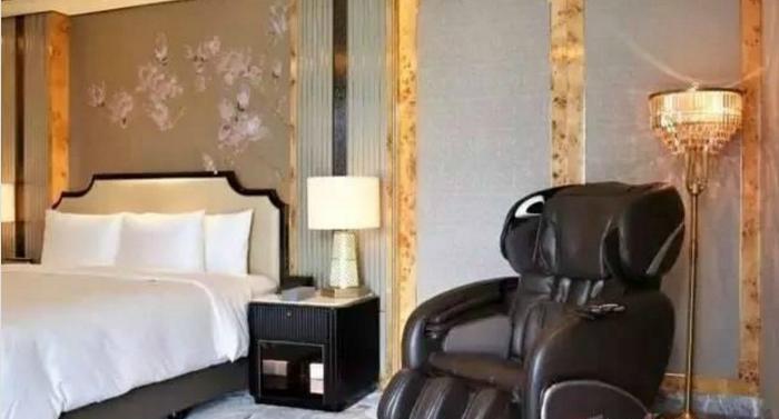极致舒适的万达瑞华之床,卧室里配有高级全身按摩椅。