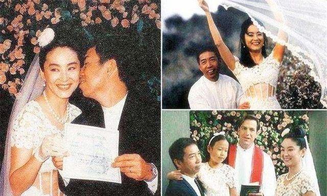 林青霞最彷徨无助的时候,在秦祥林的无限柔情中,最终答应与秦祥林订婚。而秦汉的家庭纠纷也闹至顶点,为了挽回林青霞的心,秦汉决意与妻子邵乔茵离婚,并公开表示了对青霞的爱,林青霞最終还是与秦祥林分道扬镳。1994年6月29日,林青霞嫁给香港商人邢李源,淡出影坛,暂时为她的电影生涯划上休止符。图为林青霞和邢李源的结婚照。