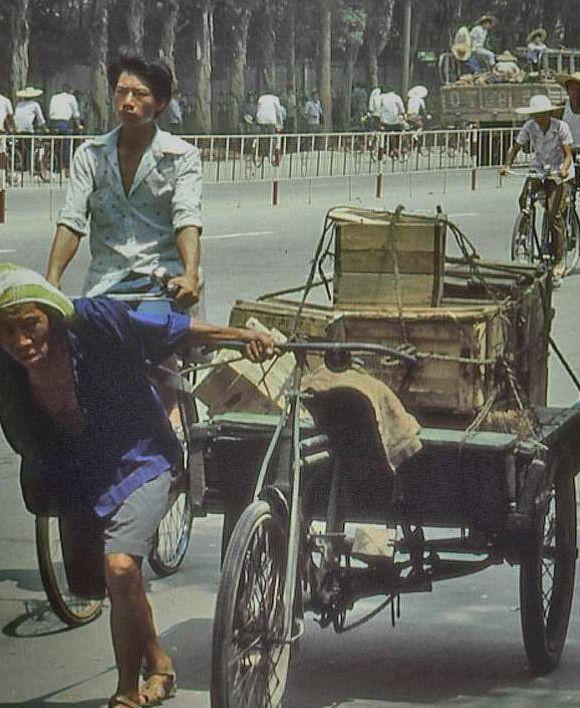 瘦弱的大爷独自一人拉着三轮车。镜头下的80年代照片:图1独特的鸡窝,最后一个是全村的蝈蝈吧!