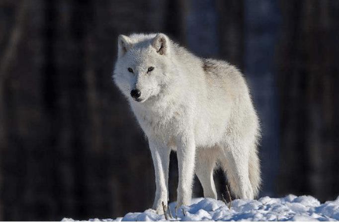 北极狼也叫做白狼,全身都是白色的,毛发相对来说体型比较小,但是身形很矫健,在加拿大北部是比较常见的一种狼品种。