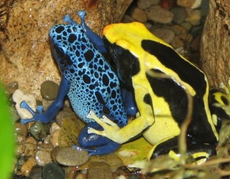 这种青蛙的皮肤非常漂亮,有着各种颜色的花纹。在它们漂亮的花纹下面有着非常大的毒性。