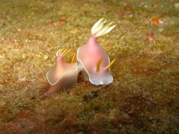 北美洲沿海生长着一种有趣的大西洋扁贝,这种生物并不是生来就是雌雄同体。这种动物很是特别一般来说雄性会在水底游来游去,遇到了自己的配偶之后就趴伏在雌性背上。不久之后雄性失去了生殖器成为雌性就这样不断转换着。这种交配过程形成一种塔状的扁贝链,下面一层层都是雌性,最顶上一层雄性扁贝,这一结构会越筑越高。在水底四处游荡的全是雄性扁贝,而雌性扁贝则一天到晚一动不动地伏在水底。