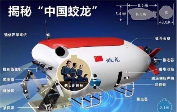 2010年7月,中国第一台自主设计和集成研制的载人潜水器“蛟龙”号下潜深度达到了3759米,中国成为继美、法、俄、日之后,世界上第五个掌握3500米大深度载人深潜技术的国家。