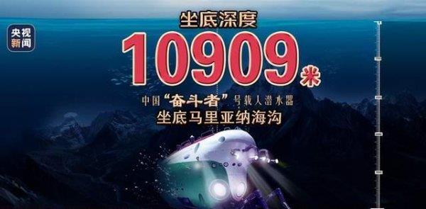 中国“奋斗者”号载人潜水器成功坐底10909米