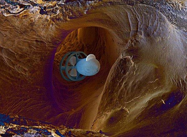 血管潜水艇不经可以在血管中穿梭,而且还可以释放一种“手臂”来抓住血管中的东西,比如拥堵在血管中的血块等等。而且科学家们还坚信,这种潜水艇还可以直接爬向人体内的肿瘤附近,直接释放治疗药物杀死肿瘤细胞,对癌症的治疗有很大的帮助。