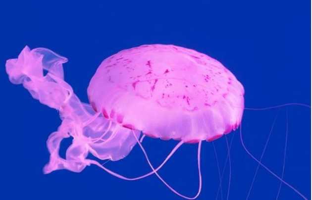 这种水母颜值真的非常高,它的外形漂亮,颜色也十分美丽的,触手漂浮在水,里面就像穿了一条漂亮的粉色裙子。