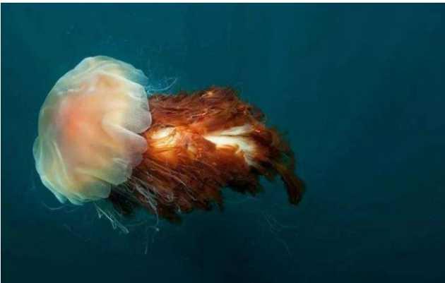 这种水母的外形非常漂亮,触手有150多条,最长能够达到35米,体重能达到800斤,也是在北半球大洋当中,最大的水母,身体上有剧毒。