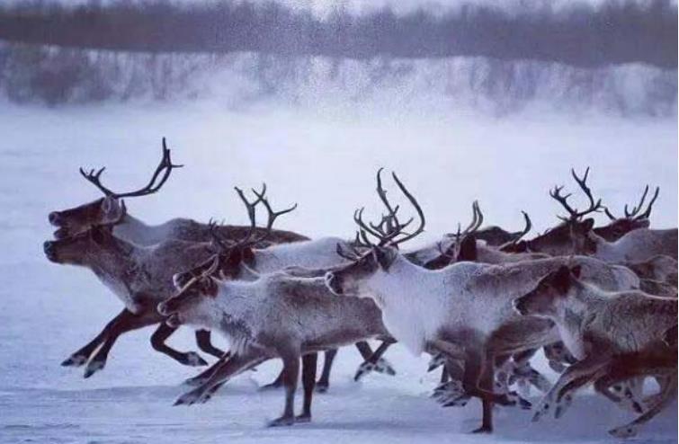 驯鹿成群的迁徙看起来也是相当壮观的,和其他的动物迁徙不同,驯鹿并不是每年都有同样的路线,会根据当地的天气状况来改变行程。