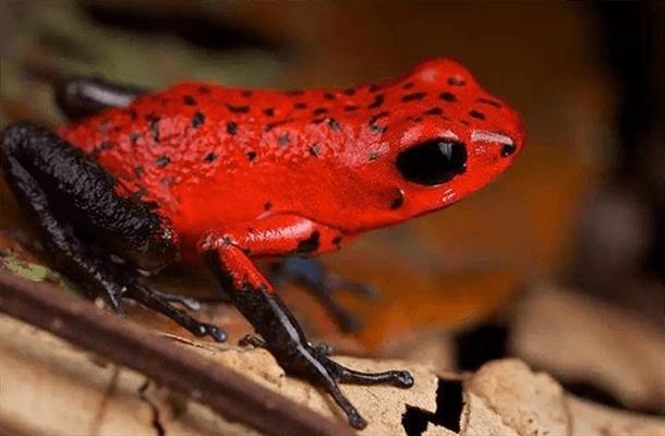 草莓见多拉的外形看上去特别漂亮,有些和草莓的颜色差不多,红色的皮肤上面带着黑色的小点点,是一种比较罕见的青蛙,毒性也很强。