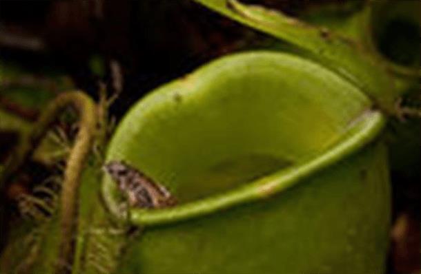 这种青蛙的体型特别小,是世界上体型最小的青蛙,成年的雄性猪笼草青蛙只有豌豆那么大,不过叫声却十分响亮。