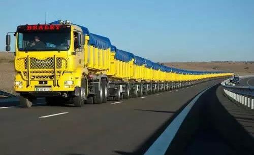 当你看到下面这个图片的时候,你就不会再怀疑你的想象了,从这个角度看起来,图片上的卡车长度有200米了吧!但是当我们了解到的时候,惊奇的发现,这卡车既然长达800米,由42节拖车组成的超级大卡车,总长度比全球大多数的火车都还要长,因此被誉为“公路上的火车”,可以同时运载非常多的货物,所以MILLAU成为世界上最长的卡车也是名副其实的。