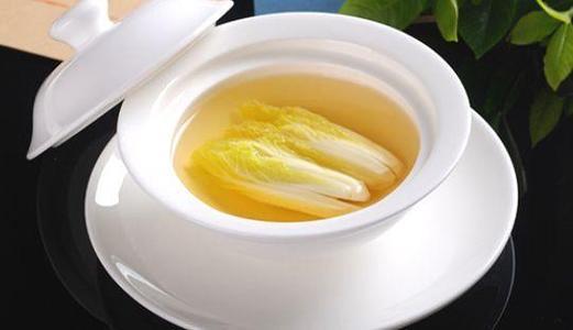 开水白菜是四川传统名菜,乃原系川菜名厨黄敬临在清宫御膳房时创制,后川菜大师罗国荣将其烹调技术带出四川,成为国宴上的一味佳肴。这道菜工艺极其复杂,原料要求极其高。至少需要两位大厨默契配合,并且在一个十分宽敞并专业的厨房中,再加上一打熟练的帮手才能做出一道开水白菜。此菜不在乎主料的张扬,在于其制汤的严谨与苛刻。看似朴实无华,却极尽显菜品味道的精炼与精致造诣的功底。