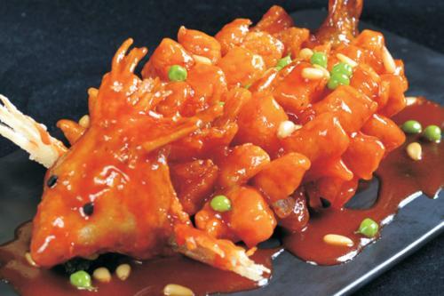 最终将整条鱼身改刀成108颗蒜瓣籽,形如菊花盛开,微微上翘的鱼头和鱼尾,前后呼应。经过油炸肉粒翻开如毛,头昂口张,鱼尾微翘,形如松鼠极具美感。而国宴上这道菜则为了顾及外宾的感受,一般会去掉头尾,只上鱼身。
