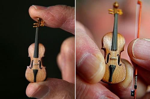 英国一位名叫大卫·爱德华兹的音乐家放弃了自己的音乐事业,转而制作全世界体积最小的小提琴。这把小提琴是按照一般小提琴的标准来制作,虽然尺寸小了点只有3.81厘米,但是质量可以和世界上优质的小提琴不相上下。因此开价1000英镑(约人民币8800元)。