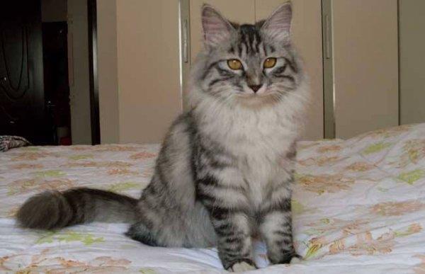 虽然缅因猫外形庞大大,但其实内心还是很柔软的,素有“温柔的巨咪”之称。雄性缅因猫体重一般在21-35磅之间,也就是在39-75斤之间,雌性缅因猫的体重则在15-29磅之间。这种缅因猫不仅长得体型庞大,而且智商也要比普通的猫咪要高出许多,平均寿命大约为12.5年。唯一的缺点就是叫声不如平常的猫咪那般轻柔悦耳,有点儿像鸟鸣,保证让人过耳不忘。