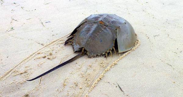 鲎这种动物也是历史相当悠久的。鲎的祖先出现在地质历史时期古生代的泥盆纪,当时恐龙尚未出现,原始鱼类刚刚问世,随着时间的推移,与它同时代的动物或者进化、或者灭绝,而惟独只有鲎从4 亿多年前问世至今仍保留其原始而古老的相貌,所以鲎有“活化石”之称。