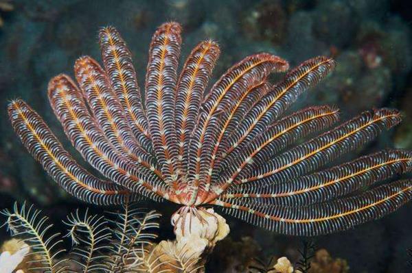 海百合虽然说长得就好像一个植物,[bai]但是它确实是一种始见于早寒武纪世的棘皮动物,在距今约4.8亿年前就已经出现,主要在海里生活,这是一种很古老的生物,在人们还没出现的时候它们已经遍布海洋了。海百合具多条腕足,身体呈花状,表面有石灰质的壳,由于长得像植物,人们就给它们起了海百合这么个植物的名字。