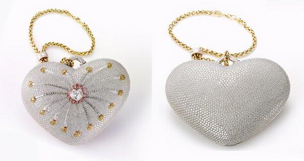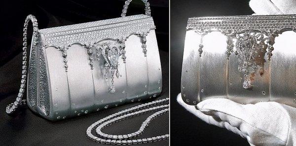 美国Mouawad公司的这款“1001 Nights Diamond Purse”正式获得吉尼斯世界记录的认证。整款包包由18K黄金手工制作,由10名技艺高超的匠人耗时8800小时完成,制作此款包包共使用了4517 颗钻石(包括105颗黄钻、56颗粉钻、4356颗白钻),钻石总重达381.92克拉。