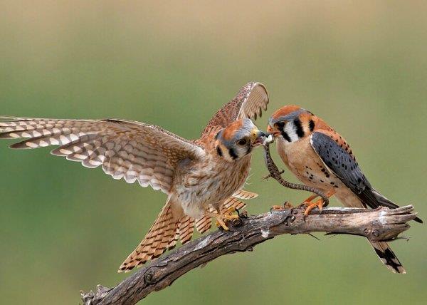 俗话说的好“麻雀虽小,五脏俱全”,虽然美洲隼的个头小,但是寿命却足足有十年之久。美洲隼在南北美洲很普遍,下体白色或淡黄色,上体红褐色和石板灰色相间,头部有颜色斑普通红隼,分布于旧大陆大部分地方。有时叫作旧大陆红隼、欧亚红隼或欧洲红隼。它是西半球唯一的红隼,是隼科鸟类中羽色最显眼的种类之一。广泛在北美洲和南美洲。对环境的适应力强,常常栖息于开阔林地、草原、半荒漠地区以及市郊。美洲隼对于爱情是很忠贞的,就像我们人类一样,所实行的是一夫一妻制。