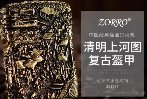 佐罗这家隶属于香港佐罗集团的金属打火机品牌,专注于研发设计、策划生产和销售男性打火机产品,不同的产品系列还融汇了不同的国际元素、流行元素于中国风品味,在材质上也大致可分为纯铜、纯银、彩漆、拉丝面等。