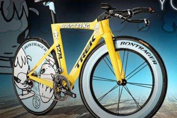 摇滚版公路自行车是以辆由碳纤维设计的一辆自行车,车身很轻、速度很快,适合用来比赛,设计师用吸引人的卡通人物和Livestrong的符号来装饰,所以非常好看。更是被拍出了20万美元的天价。