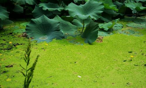 浮萍,又称:青萍、田萍、浮萍草、水浮萍、水萍草,是浮萍科水面浮生植物,是比较常见的一种植物,一般都会在水面上漂浮着。浮萍整个植物全长不足1毫米。果实重量只有70毫克。比普通的食盐粒还要小。叶子是对称形状的,表面是绿色的,背面一般是浅黄色或者是绿白色的,有三个不太明显的叶脉。果实就像是陀螺状的。喜温气候和潮湿环境,忌严寒。