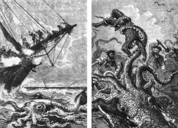 1845年,纽约居民看到一具35.6米长的骨架,自称是考古学家和协办人阿尔伯特·科赫·科赫(Albert Koch Koch)说,这是一具被摧毁的海洋爬行动物的遗骸,但后来证明这是20世纪初建造海洋巨蟒的一个谜,目的是为了抓住传说中的海洋巨蟒,建造了一艘特殊的勘探船,配备了可以吊运数吨重物的巨大吊钩和数千米长的钢缆。