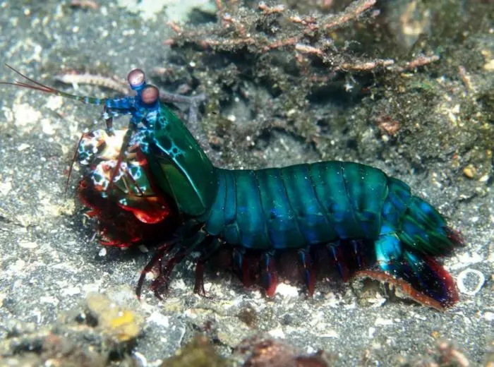 虾蛄又叫螳螂虾,它们用前脚打出重击可达时速85公里,连螃蟹的外壳都不能承受。