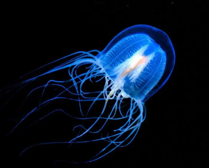 灯塔水母:每当该水母受到攻击、或者是处于恶劣的环境、生病或者老去时,都能逆生长回水螅虫型态,并形成新的群体,使它长生不死,这也相当于永生了。