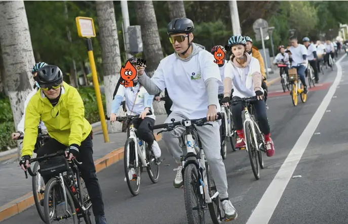 当天,张歆艺和袁弘都穿着长袖长裤,打扮朴素低调,和众多骑行者融入在一起,看上去氛围非常好。